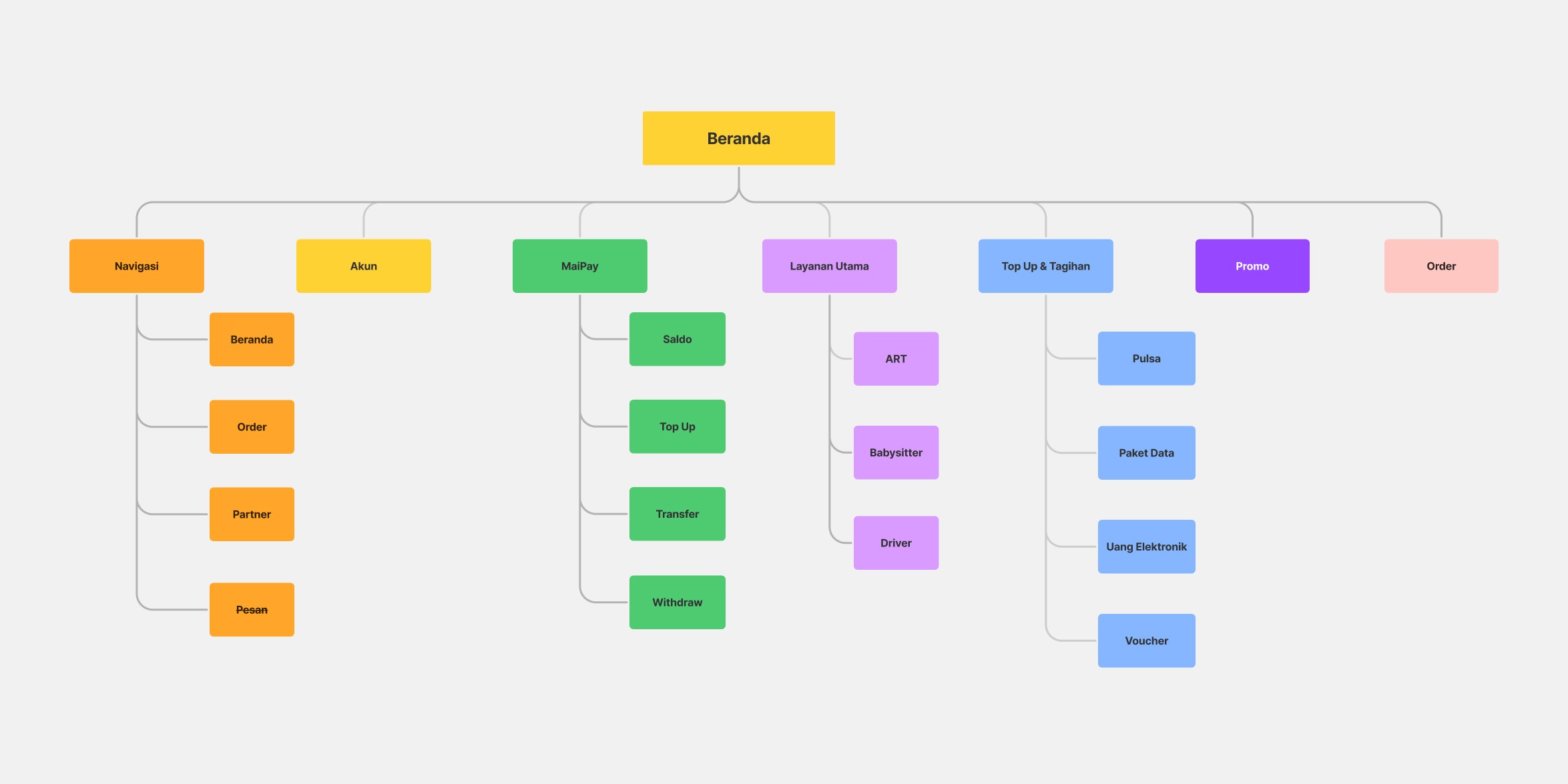 To adopt best practices, I analyzed the homepage designs of leading apps in Indonesia. This includes examining 4 major platforms, particularly those with their financial features like Go-Pay and ShopeePay. The analysis focuses on how they present: Key Features, Navigation, and Content Structure.